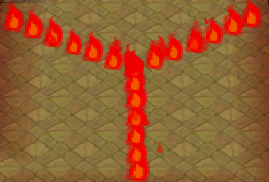 If they touch Link, Fire Bars will damage him and set him on fire temporarily. This can be especially hazardous in narrow spaces or in areas with nearby pits, where the flames can be difficult to avoid and may knock Link down a hole. Fire Bars in A Link to the Past have a consistent length of having four fireballs attached to them, though subsequent games have much longer Fire Bars, with some having multiple spokes spinning around a single block.
