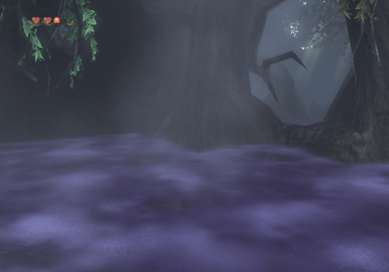 Paralyzing Fog can be found in certain areas of the Earth Temple. If Link comes into contact with it, he will become Cursed, meaning that none of his items work, including his Master Sword. While affected, Link is surrounded by a concentrated smog, his body flashes purple, and he acts disoriented or weakened. This is markedly similar to being cursed by a Blue Bubble. The curse will not be lifted unless he gets out of the Paralyzing Fog or finds a Light Beam to take refuge under.