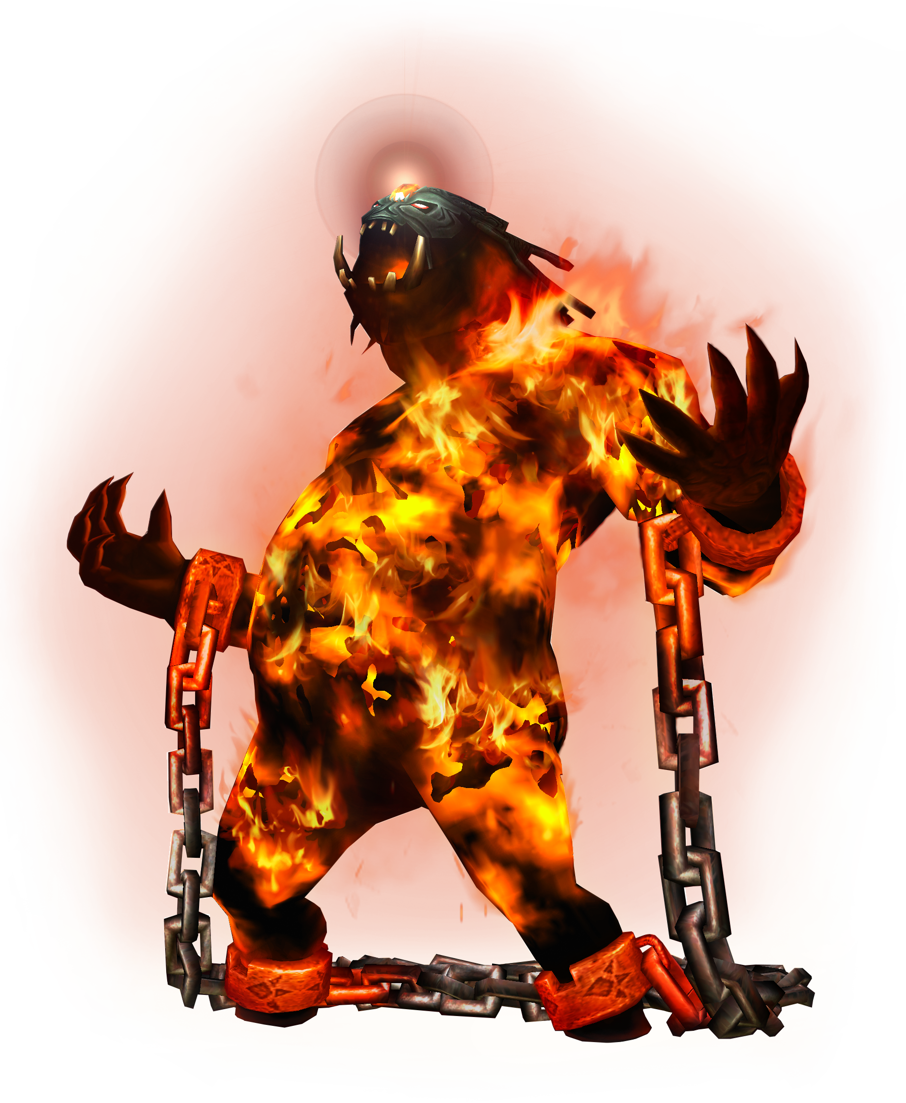 After a disturbance of volcanic activity in Death Mountain, Darbus, the patriarch of the Gorons, went into the Goron Mines to investigate the cause as well as to check on the status of the Mines' Fused Shadow. Fyrus is the form that Darbus assumed after being transformed by the power of the Fused Shadow.[2] Due to his ferocity and inability to control himself from the transformation, as well as causing destruction in the Mines, the Goron elders locked him away deep inside the Goron Mines to prevent him from causing further damage.[3]