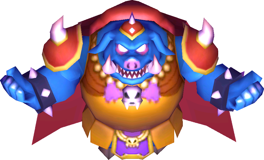 He is reborn in Four Swords Adventures, where although he is still a Gerudo, he is not the king. He begins his transformation into the King of Darkness by violating the Gerudo taboo on the Pyramid and seeking out the Trident.[27][28][29]
