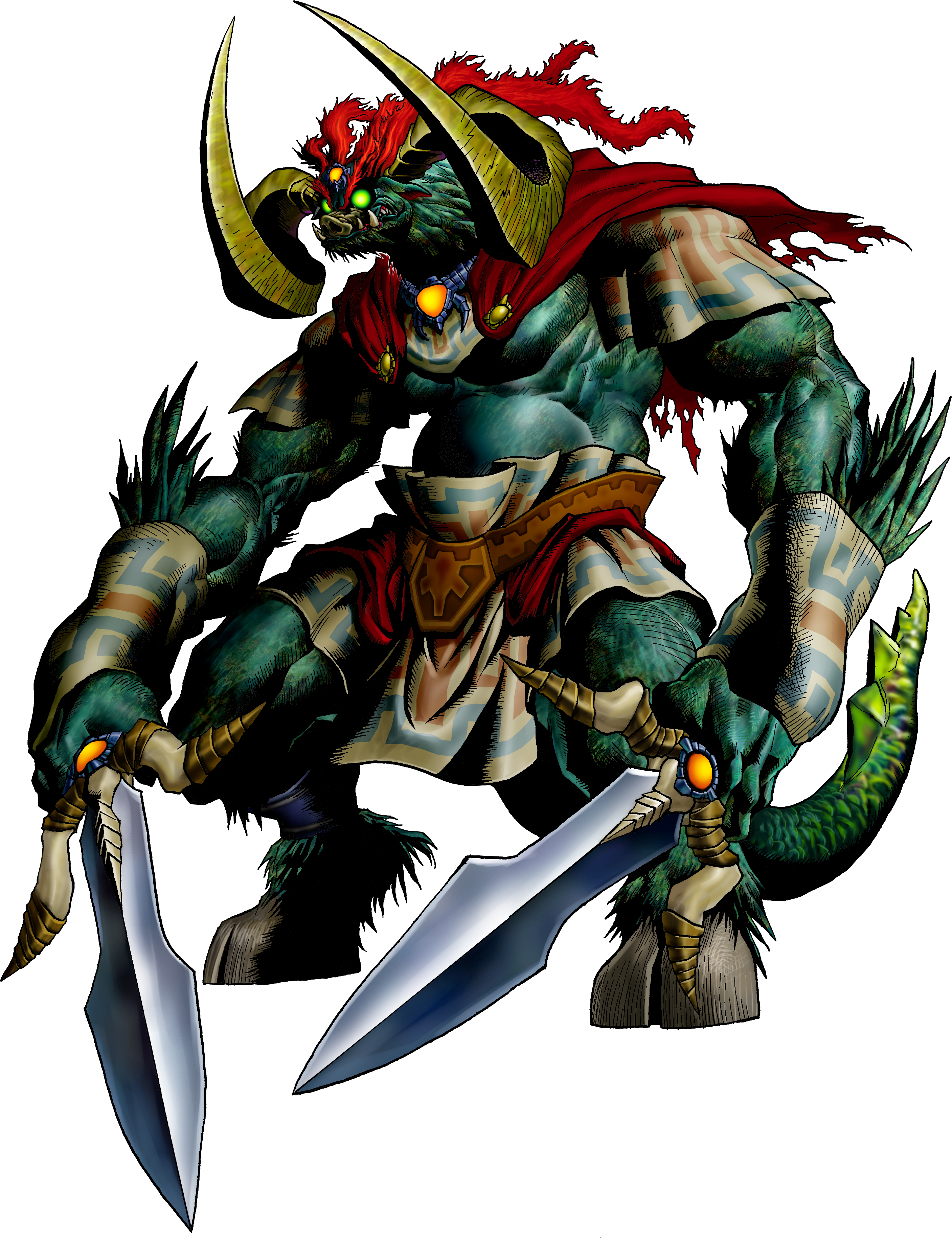 Ganondorf was also an immensely powerful sorcerer with vast mystical resources. Additionally, Ganondorf has proven himself to be a very talented swordsman, as seen in the final battles between him and Link in The Wind Waker and Twilight Princess. He is also very physically strong, helped further by his extremely impressive height.