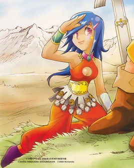 During their trip to the Eastern Palace, Ghanti becomes more of a burden than a help, asking that Link carry her up a mountain.[25] Despite this, they become friends, with her revealing that she wants to find the man who killed her parents in her quest for the Triforce.[26] Once they finally reach the Eastern Palace, they encounter an Armos Knight. Ghanti attacks the knight, although her swords breaks on impact.[27][28] Link manages to outwit it,[29] and Sahasrahla reveals himself to them. The Sage describes the tale of the Imprisoning War,[30] and also reveals to Link that he is a descendant of the Knights of Hyrule who fought in this war.[31] Hearing this, Ghanti suddenly draws a knife and attempts to strike Link from behind, but is stopped by Sahasrahla's magic.[32] Claiming that Knights of Hyrule had killed her parents, she believes that if he is the last of their line, then he is her enemy, and she can finally get revenge.[33] She flees from the Palace, vowing to one day kill him.[34]