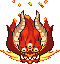 At the start of the battle, Gouen will summon a series of small flames that converge on his smaller body to form his main flame. Gouen is practically invincible when he is fully covered in flames. He attacks the heroes with balls of colored fire. If the Link of the same color hits the ball of fire, it will be reflected back at the monster. When the ball of fire makes contact with him, his flames will scatter. The Links must strike the flames to locate which one he is hiding in to cause damage.