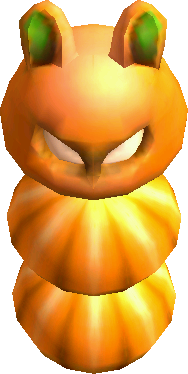 Hokkubokku are segmented, cactus-like creatures that usually dwell in deserts, and move by alternating between bouncing around and burrowing under sand. When one of their segments is hit with Link's sword, that segment will break off and bounce around the room at a high speed. Hokkubokku are defeated altogether by attacking their head segment.
