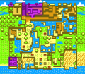Holodrum is relatively uninhabited and has no unified form of governance. The majority of its human population resides in Horon Village under the protection of the Maku Tree.[12] The village is led by Mayor Ruul. Another human settlement (possibly a colony of the previous) exists nestled into the mountains and lies directly beneath Mt. Cucco. Sunken City, true to its name, is flooded in Oracle of Seasons by great snow-melts from Mt. Cucco due to the disharmony of the seasons.[13]