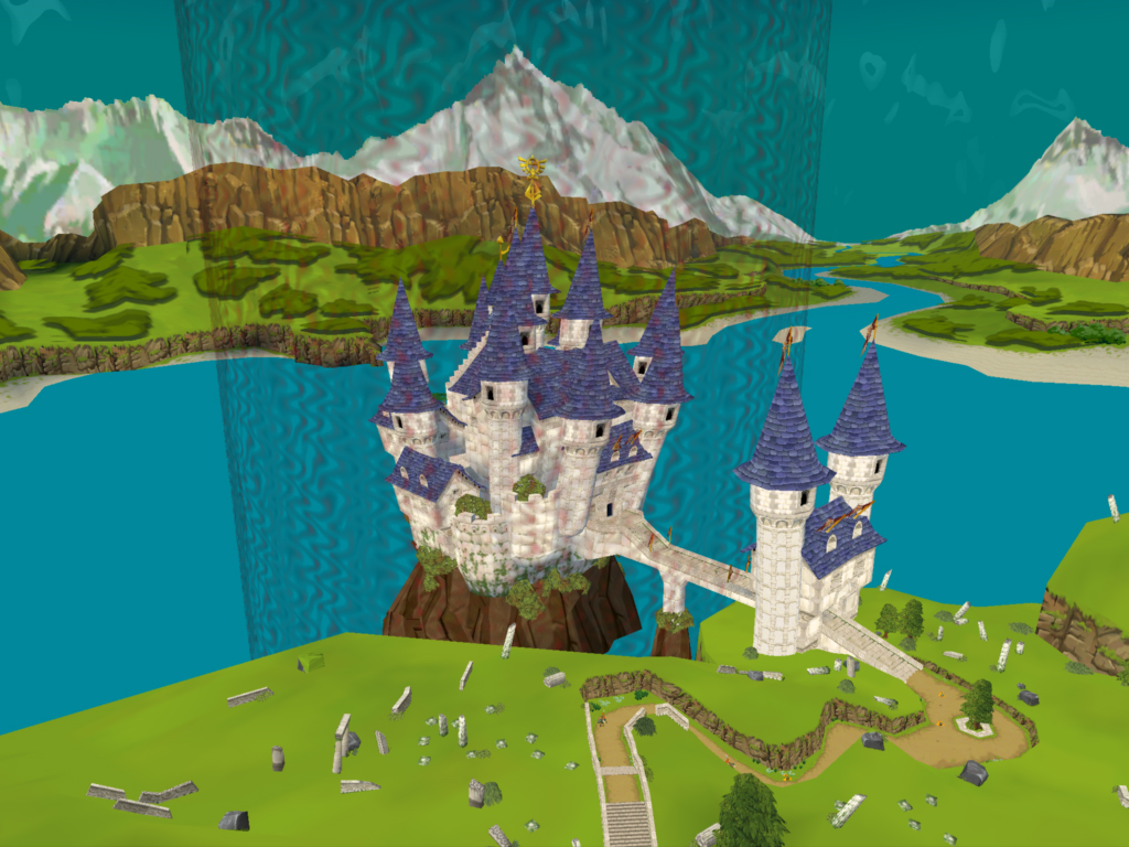 Hyrule Castle reappears in Spirit Tracks in the re-established kingdom of Hyrule. The castle's look borrows heavily from its predecessor that was drowned beneath the Great Sea along with the rest of the original Hyrule, retaining its blue roofing and white stone build. The castle area is also home once more to Castle Town, which lies directly in front of Hyrule Castle itself as in its previous incarnations. The entrance is accessed by crossing a small bridge which runs above a moat, leading to the castle gardens and eventually to the inside of the castle itself.