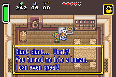 - ↑ "Cluk cluk... What?! You turned me into a human. I can even speak!" — Informant Woman (A Link to the Past)