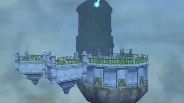 As the Isle of Songs is located within the Thunderhead and thus cannot be reached directly, Link plays the Ballad of the Goddess on top of the Light Tower, which activates a beam, creating an entrance to the storm cloud. Link's path at the Isle is blocked by a puzzle, which after successfully completing, he is granted access to the entrance of the building on the neighboring island. After going inside and activating a switch with his sword, a statue pops up and music starts playing. Fi suddenly remembers words from Hylia, telling Link what he must do next. The background music becomes louder and Fi starts dancing, teaching Link Farore's Courage. The song leads Link to a gate of the first Silent Realm.