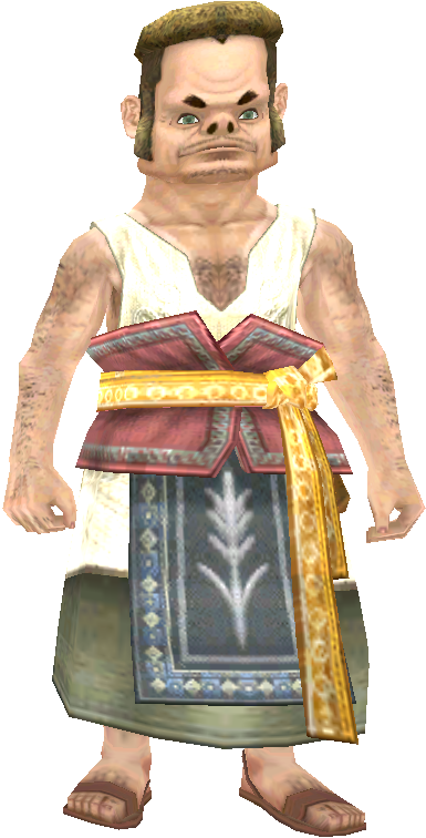 Jaggle does not allow his children to go into Faron Woods because it is dangerous; however, the two end up disobeying to chase after a monkey.[6][7] After Talo is captured by the Bokoblins and is then saved by Link, Colin tells Rusl what happened, so when Jaggle hears of it, he scolds the two of them.[8][9][10]