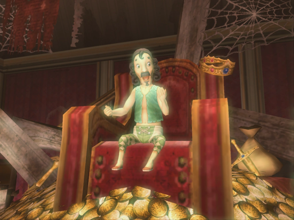 Jovani is an overweight man who sold his soul to the Imp Poes for untold riches. However, they also changed him into a golden statue with gems for eyes and his Cat, Gengle, fused to his head. He now values his humanity over his wealth and asks Link to retrieve his shattered soul.[3] When Wolf Link visits him for the first time, he learns how to defeat the Imp Poes. Jovani then tells him that if he gets 20 Poe Souls or more, he will get a reward.[5]