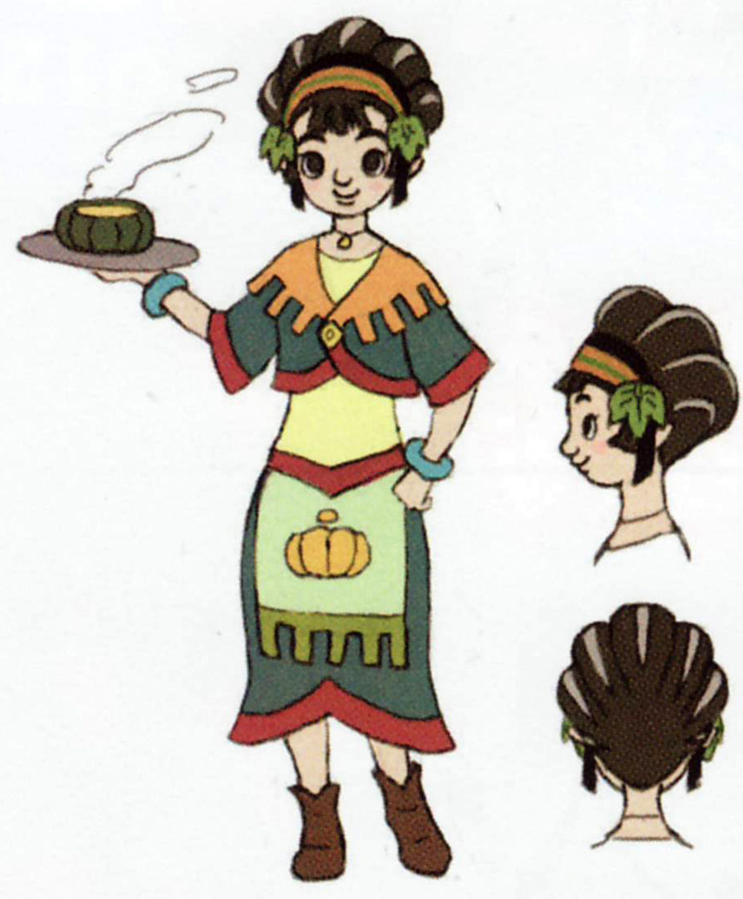 - ↑ "She is also in charge of their pumpkin patch. She finds the work exhausting and less than optimal." — Fi (Skyward Sword)