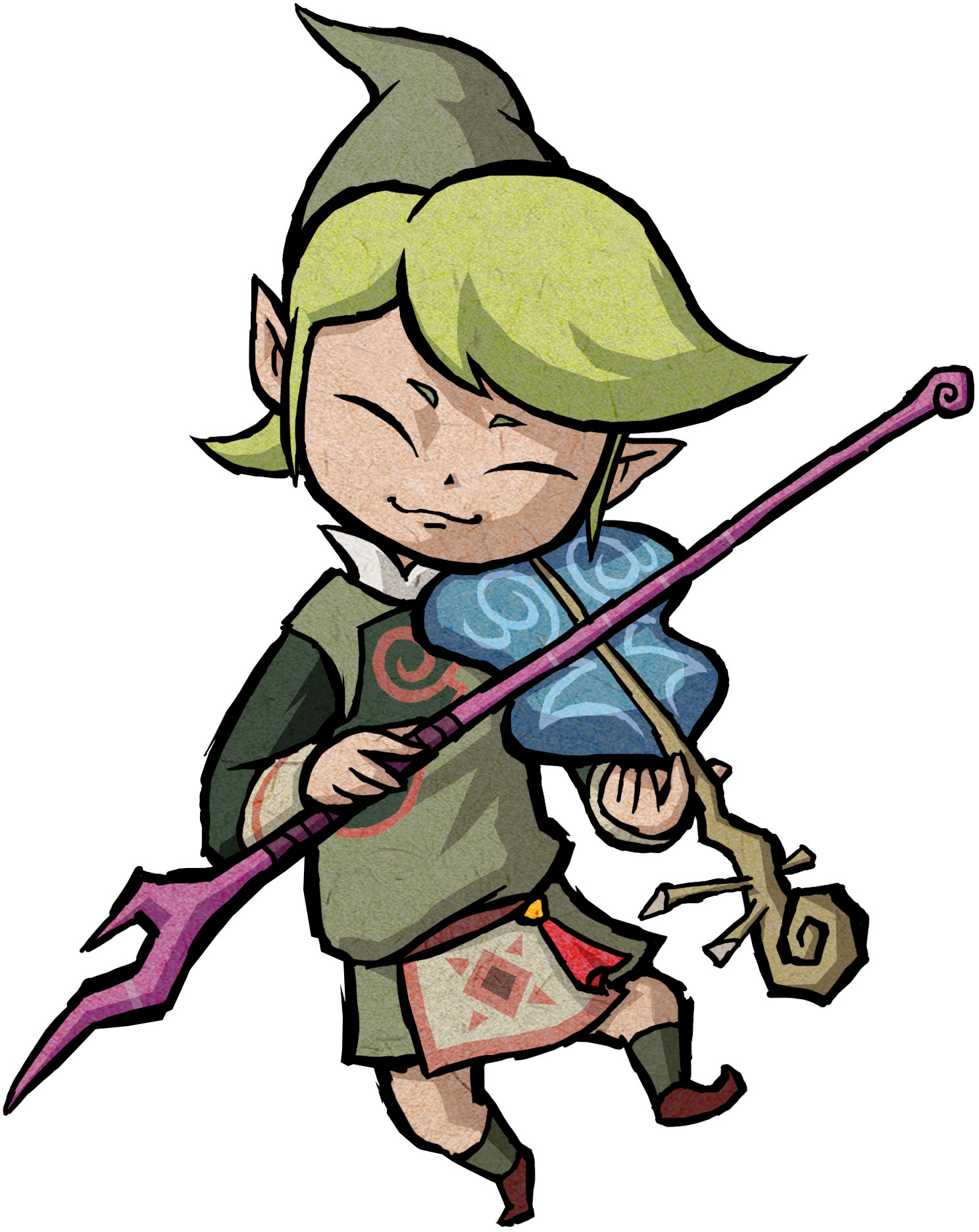 Following the Era of the Hero of Time, Fado was born and assumed the role of the Sage of Wind. As a sage, he worked with the King of Hyrule, who acted as a conductor using the Wind Waker to retain the Master Sword's power to repel evil.[8] After the Great Flood, the Kokiri adapted and took on the form of Koroks,[9] which allowed them to travel across the Great Sea with flight.