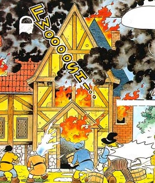 The House of Books on fire in the A Link to the Past comic