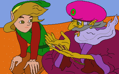 Link adventures through Koridai and along the way meets several islanders who have evaded capture. At Firestone Lake, Link and Gwonam realize that Princess Zelda was captured by Ganon and put under a sleeping spell since Link left the castle.[10][11] As Link journeys to rescue Zelda and the islanders of Koridai, he confronts and defeats the masters of the Faces of Evil: Goronu, Harlequin, Militron, Glutko, and Lupay. He also retrieves the Book of Koridai after defeating Glutko which he soon brings to the reader Aypo in Nortinka. Aypo translates its verses and reveals that Ganon can only be defeated with the Book. Link also later finds Gwonam's residence at the Hermit Flat and is given the Lantern of Vision to help him see the Sancrumies that swarm Ganon's Lair.