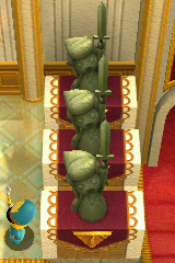 Once Link has gained the power to defeat Ganondorf, he returns to find that the statue has been destroyed in half and the chamber left open. As he heads inside, the young hero finds that Princess Zelda has been kidnapped by Ganondorf, who leaves Link to fight two Mighty Darknuts inside the chamber.