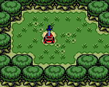 The Lost Woods are situated in northwestern Holodrum in Oracle of Seasons, connecting to the Tarm Ruins. Near the Lost Woods, there is a Deku Scrub in a cave. If Link has obtained Guru-Guru's Phonograph, the Deku Scrub will say that he likes the song and tell him to go in some specific directions in the Lost Woods.[13] If he does this he will find the Noble Sword (or, if he already has the Noble Sword in a linked game, the Master Sword) in a pedestal. This is the final part of the Trading Quest.