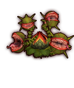 Manhandla is a large, spinning, man-eating flower with the ability to spit fireballs. Its defining characteristic is its four symmetrical mouths, which are its weak points. When each of its mouths are dispelled, Manhandla picks up speed, reaching its maximum velocity upon destruction of the third mouth. Once all four mouths are destroyed, the Manhandla is defeated.