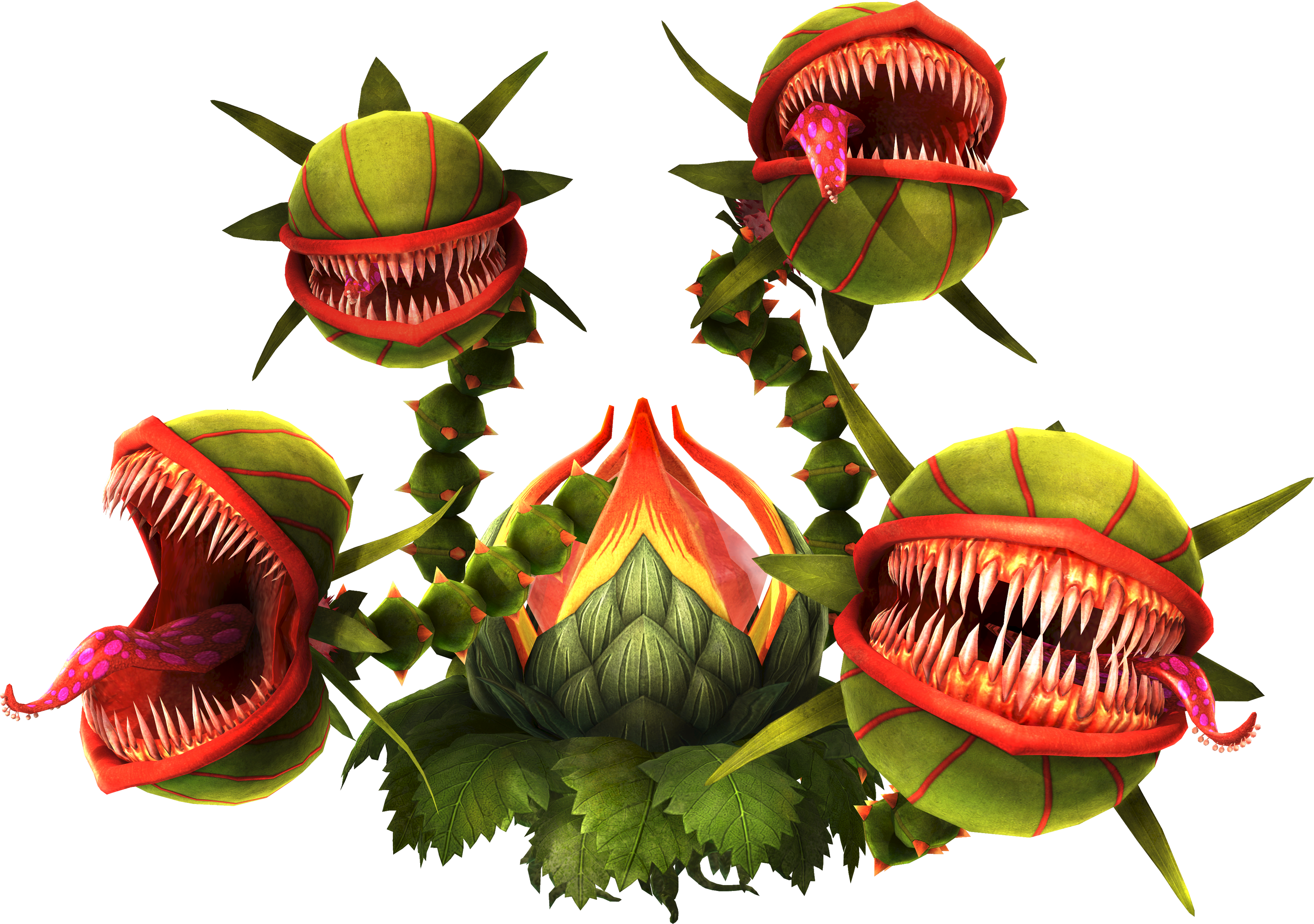 Manhandla's body is now a large Buzz Blob, which is very similar to the Giant Buzz Blob mini-boss from the Color Dungeon in Link's Awakening and to the Big Green Chuchu of the Deepwood Shrine in The Minish Cap. The four plant heads now look and act very similar to Piranha Plants from the Mario franchise, reflecting its origins as a relative.