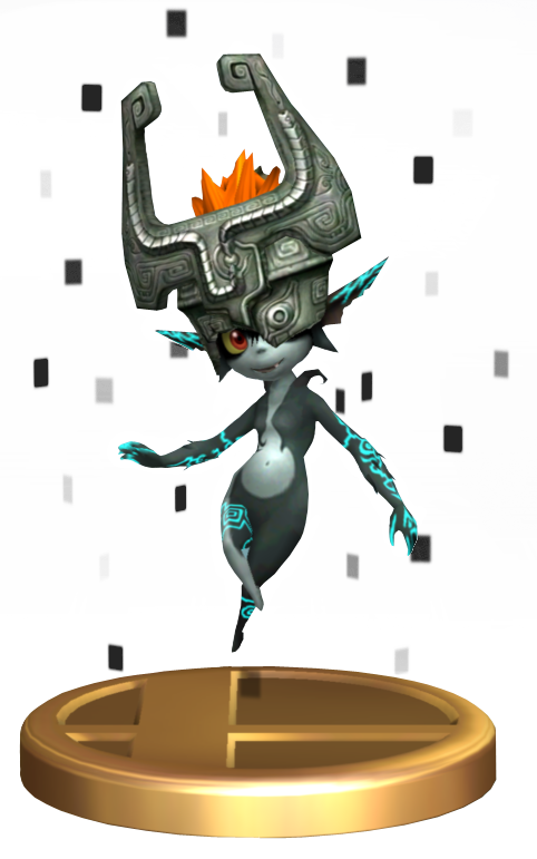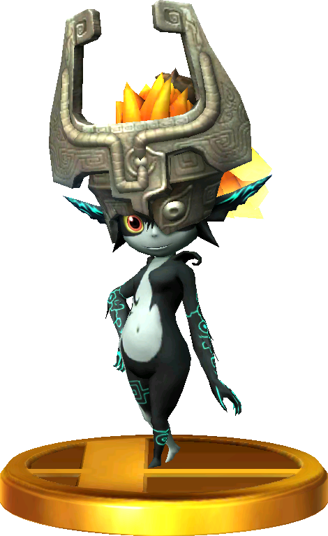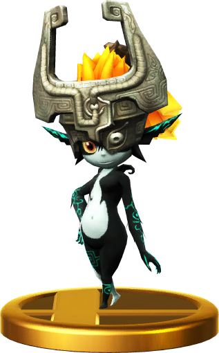 Midna reappears as an Assist Trophy in Super Smash Bros. Ultimate. She also appears as a Spirit and, when enhanced to Level 99, can become, Wolf Link & Midna.