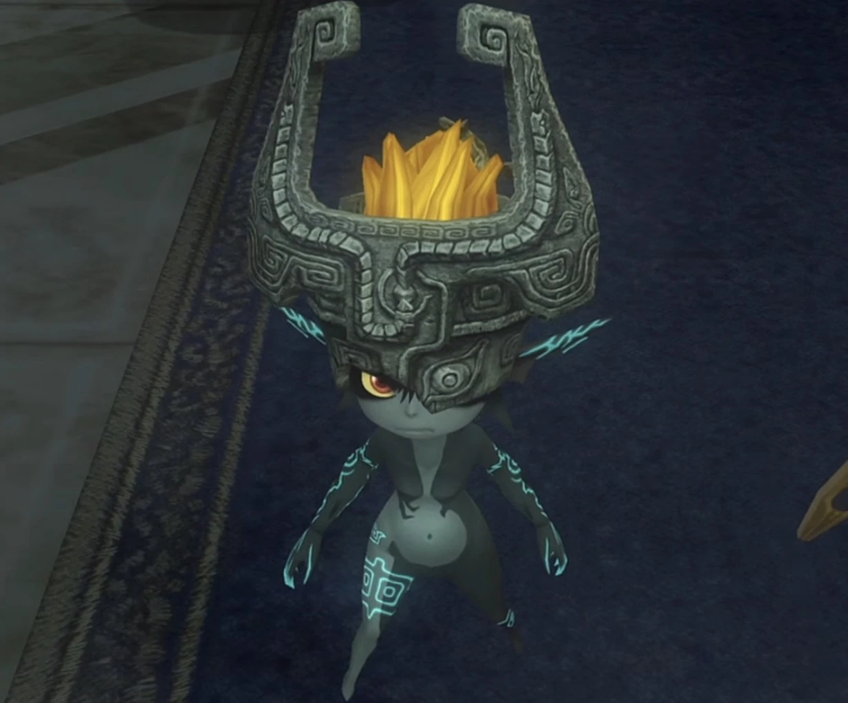- ↑ "What? Say something! Am I so beautiful that you've no words left?" — Princess Midna (Twilight Princess HD)
