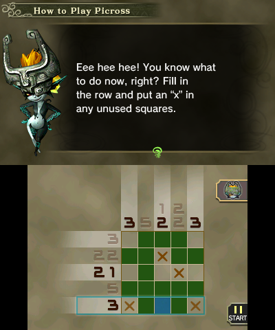 Princess Midna appears in the in-game tutorials in My Nintendo Picross: Twilight Princess, where she teaches the rules to Picross puzzles and offers tips on solving them.