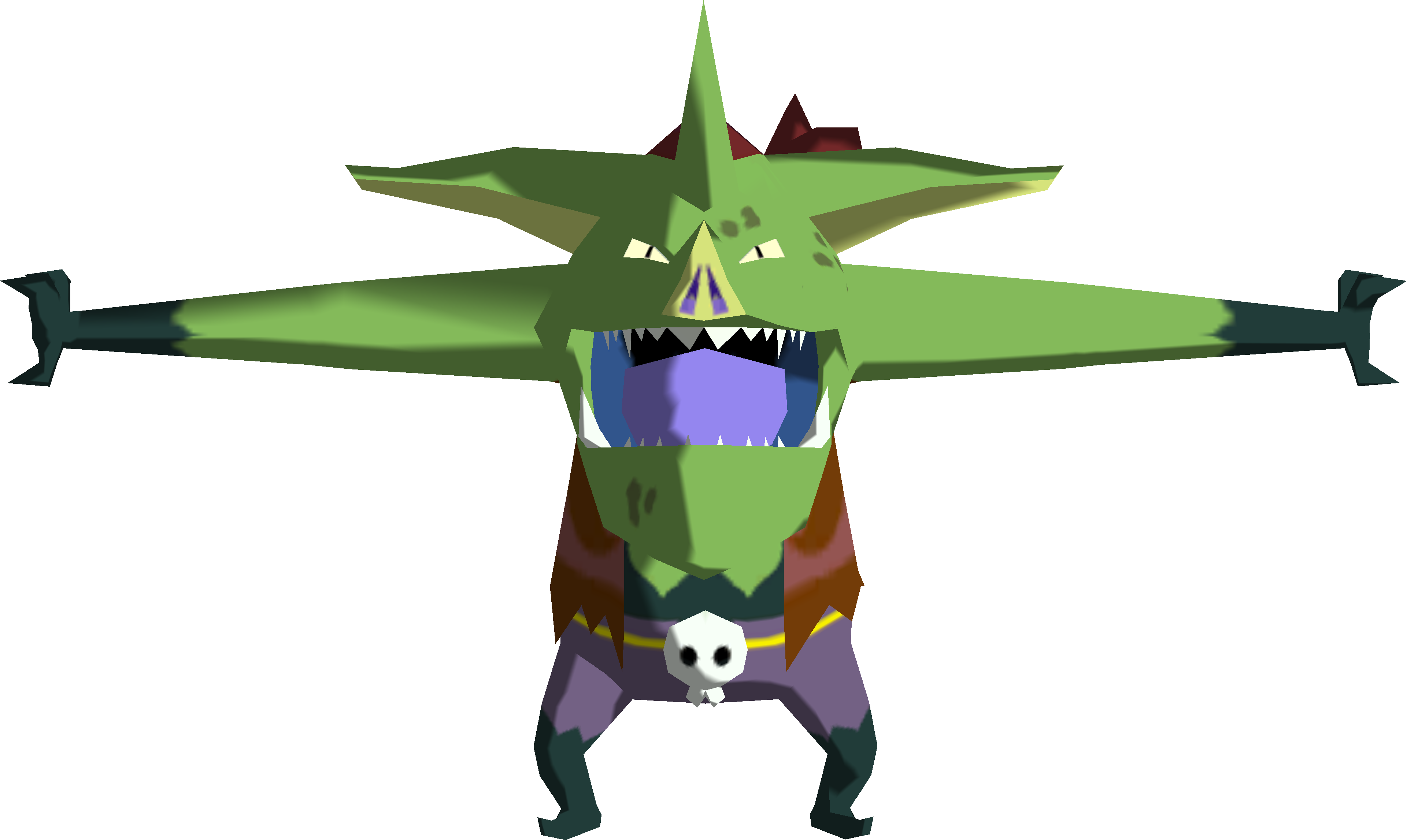 The island consists of tall, interconnected, brick structures with flat, grassy roofs. Palm trees grow on the roofs, which can be used as targets for Hookshot. Several Warships patrol the waters surrounding the island. On the tallest structure is a secret Cave housing a Triforce Chart.
