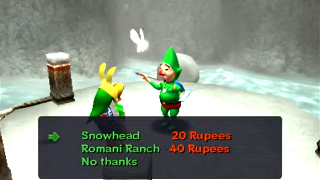 - ↑ "Now, quickly go beyond the Twin Islands Cave after leaving Goron Village." — Goron Elder (Majora's Mask)