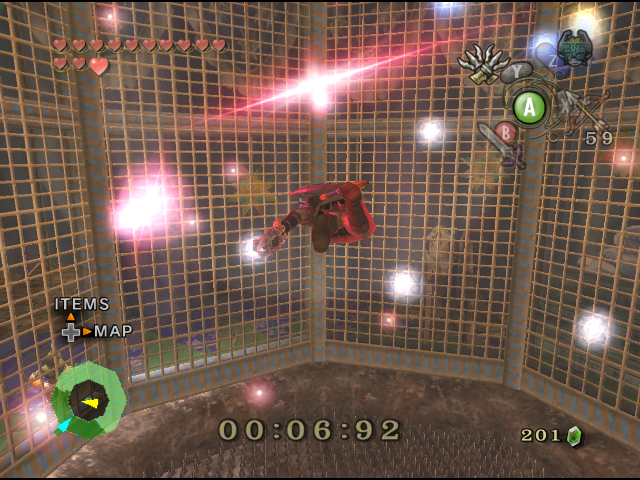 - Clawshot Game: The default game that is given once Link arrives in Hyrule Castle Town for the first time. The objective of the game is to collect the scattered light orbs within the time limit provided. Although it is possible to win this round without the aid of the Clawshot, it is extremely difficult, as many of the orbs hang out of reach of a standard Link jump. After beating this round, Link's Quiver will be upgraded to the Big Quiver.