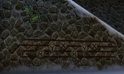 The notes for "Saria's Song" can sometimes appear on a wall in the northern part of Termina Field, where Link can play a song for Rupees.