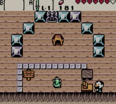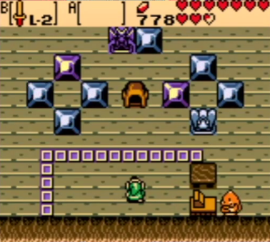 In Oracle of Ages, the Shooting Gallery appears in Lynna Village in the past. The game consists of hitting a ball with Link's Sword so it hits certain blocks which give points. The Fairy Blocks are worth 100 points, Blue Blocks are worth 30 points, Red Blocks are worth -10 points, or if Link misses or hits an Imp Block, it is -50 points. It is also the easiest and fastest way to earn Gasha Seeds or Magic Rings.