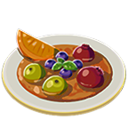 This sweet dish is made by heaping tasty fruits into a pan and simmering until tender." — Inventory (Breath of the Wild)