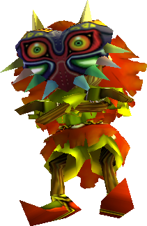 - ↑ "It is an accursed item from legend that is said to have been used by an ancient tribe in its hexing rituals. It is said that an evil and wicked power is bestowed upon the one who wears that mask." — Happy Mask Salesman (Majora's Mask)