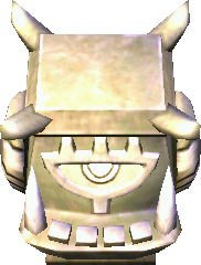 In Stage 2, the Links again appear on a platform with the eight different Items, which the Links can freely swap their items for if they choose. A disk platform drops the Links into a pit with lava pools. Here the Links face a horde of Fire Keese, Green Kodongos, and gold Spear Throwing Soldiers riding Armos statues. The Links are also provided with their own Armos to help defeat the Enemies with. After their defeat, a gate opens to the next platform with a disk lift. This drops the Links into a quicksand-filled pit with Stalfos, Morths and a Gibdo. After the Stalfos and Gibdo are defeated, another lift appears. The Links are then dropped into a pit filled with Light Ghini and a Ball and Chain Soldier wielding a fiery ball and chain. The pit immediately turns pitch dark as soon as they fall in. The Ball and Chain Soldier provides some light, but the Links can also light their way by lighting the torches with the Fire Gloves. After all Enemies are defeated, the Triforce Gateway appears.