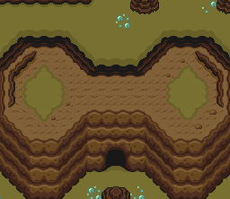 In A Link to the Past, Spectacle Rock is located on top of Death Mountain in the Light World. Being Death Mountain's highest point, it is an obstacle blocking the path to its north that leads to the Tower of Hera.[5] The center of the adjoining bridge between its peaks contains a cave that leads to lower elevations on Death Mountain. Its counterpart in the Dark World is buried under volcanic sediment, as its outline is visible. To get to the path north of Spectacle Rock in the Light World, Link must first travel to the Dark World and stand within the outline of its counterpart. Using the Magic Mirror within this area sends Link on top of Spectacle Rock in the Light World where he can find a Piece of Heart on its eastern peak. He can then leap down to the path north of it leading to the Tower of Hera.