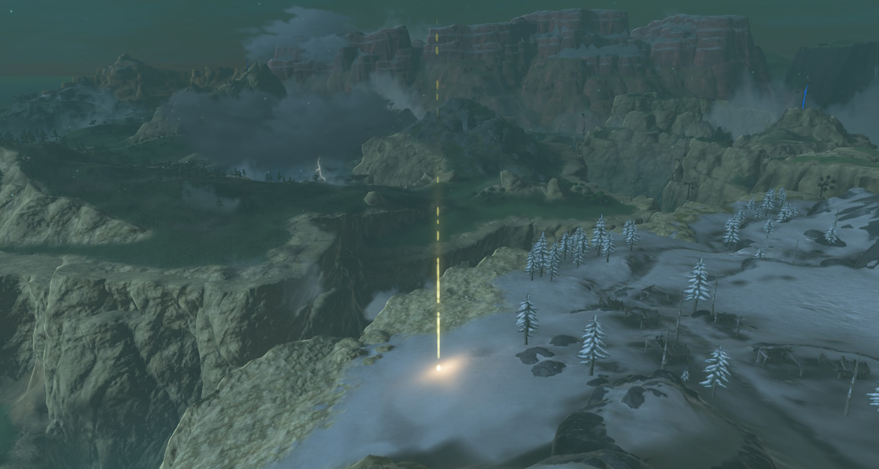 A fallen Star Fragment and its projected beam from Breath of the Wild