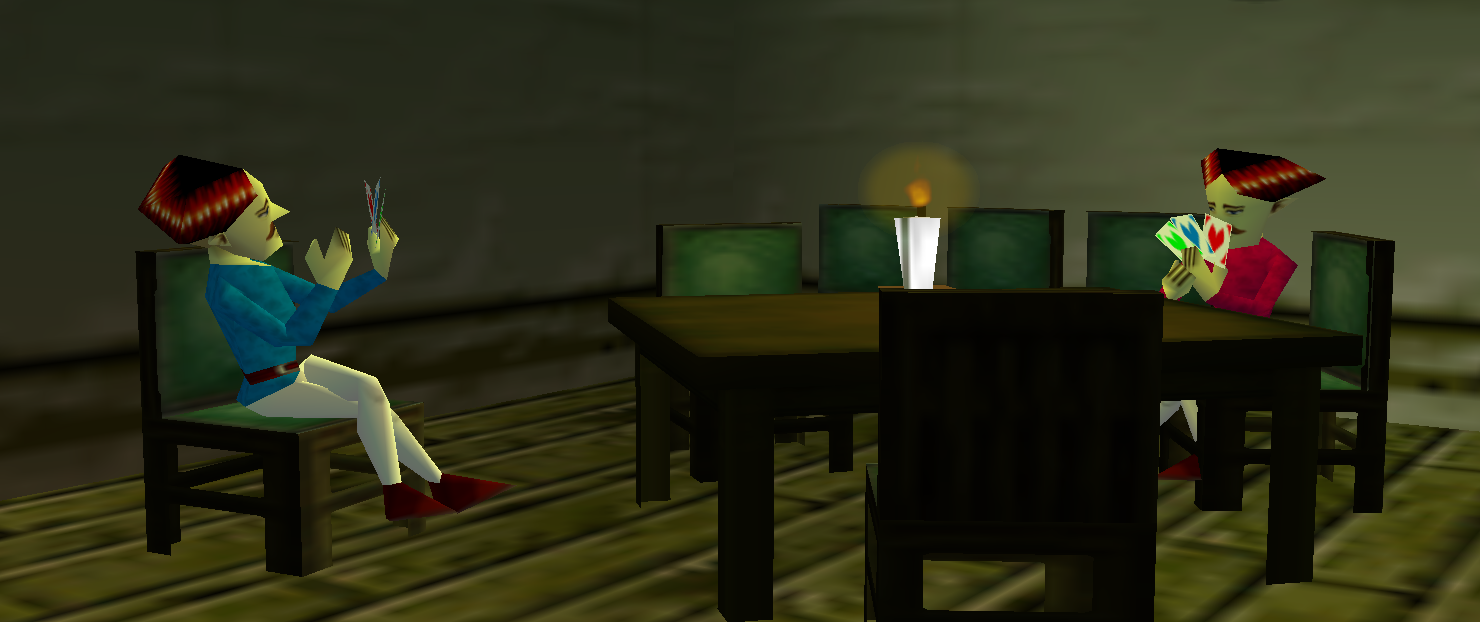 The Juggler Twins playing cards in the farthest room