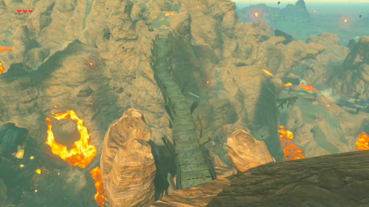 Stolock Bridge is a long, rickety bridge in Eldin Canyon that crosses overhead Goron City. The Bridge crosses the two ledges between the Abandoned North Mine and the continuing road that ultimately leads to Death Mountain. The Bridge can easily be reached by following the road through the Abandoned North Mine, which leads to a tunnel inhabited by Rock Octoroks before finally the Bridge itself.