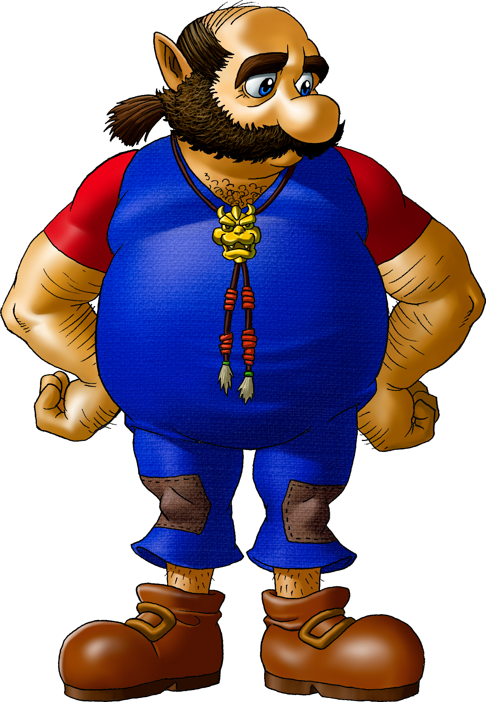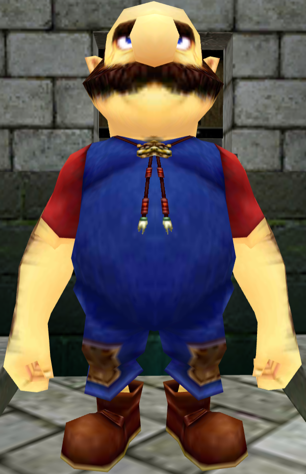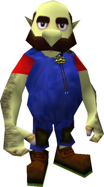 - ↑ "Look at the bearded man sleeping over there. I bet even someone like him has had his share of troubles in the past..." — Hylian (Ocarina of Time)