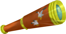 With the Telescope, Link notices Quill looking up at the sky at the Helmaroc King kidnapping Tetra, and it is also the only time the Telescope is needed to advance the story of the game.[5] The Telescope is also useful to locate elements that are too far from Link's first glance, such as the seagulls surrounding a Big Octo, or a Submarine.