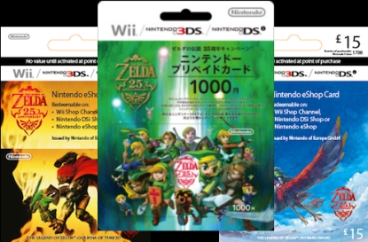 In late 2011, Nintendo offered three special Zelda-themed Nintendo points cards, which could be used to purchase online content for the Wii, Nintendo 3DS or Nintendo DSi. Only in Japan, the points cards were actual plastic cards, while the other regions just printed the code on a cardboard card.