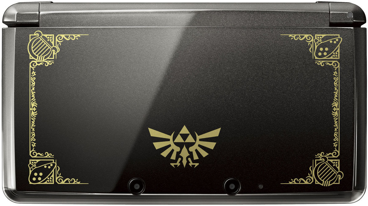 As part of a bundle for the 2011 Holidays, a special, limited-edition Cosmo Black Nintendo 3DS marked with the Royal Crest comes bundled with Ocarina of Time 3D. The Nintendo 3DS includes other special markings, such as the Goddess's Harp and the Ocarina of Time in each of its corners. The bundle is sold at the price of $199.99 in the United States.[19]