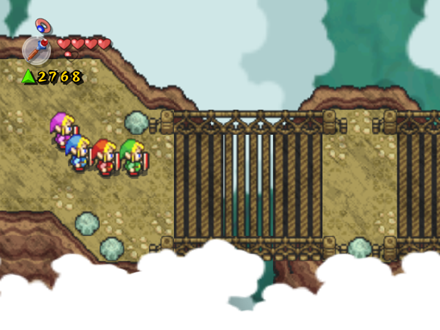 The Mountain Path is the second stage of Death Mountain in Four Swords Adventures.[1] Following the foothills, eventually the Links get onto the mountain path. It is an dry and reeky area, much prone to rockfalls. The longtime guardians of the mountain, the Gorons, reside here as well. Once the four Links arrive, they're told by Kaepora Gaebora to help the Gorons who have been pestered by a giant bird.[2]