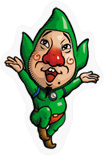 A strange little man easily spotted by his trademark green bodysuit, bright nose, and pointy beard. Tingle has frequently appeared around Hyrule and always lets those he meets know that he's a fairy and selling homemade maps. In a recent adventure, Tingle escapes a sad and dreary life to embark on a magical adventure in the delightful, dreamlike paradise of Rupeeland. | Random |