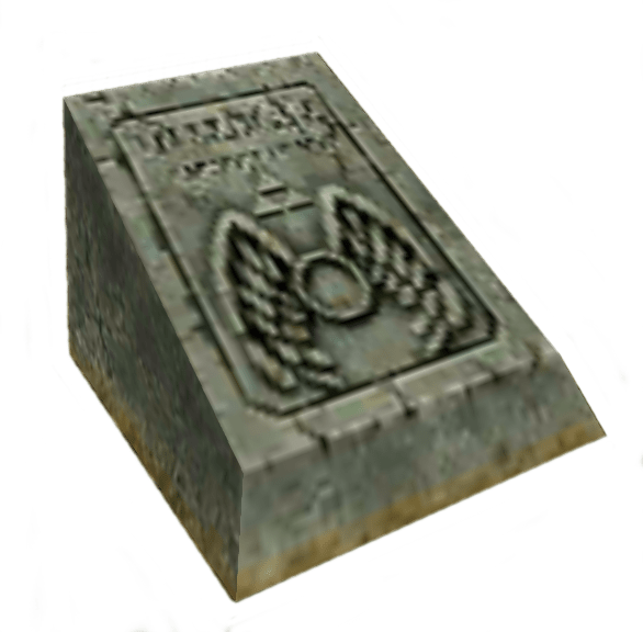 Inside the Royal Crypt, a Tombstone emblazoned with the symbol of the Triforce marks the grave of Gustaf.