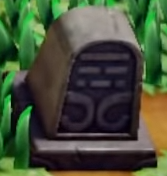 Tombstones are found within the Graveyard. Touching a Tombstone will spawn a Ghini or a Giant Ghini. A single Tombstone can be found west of the Graveyard. It is the resting location of the Ghost.