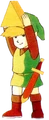 - ↑ "The Triforce was split into three pieces, separated forever. One piece remains with the royal family. Another piece has fallen into the hands of Ganon, sealed with him. The third piece of the Triforce has vanished, though legend says it is hidden in the spirit of a true hero. It slumbers now somewhere in Hyrule--waiting for the time when the world needs a new hero." — Painting (A Link Between Worlds)
