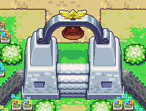 Unbeknownst to anyone, Hylia also hid the entrances to the land where the Triforce lay on this aerial outcropping, in a secret structure called the Sky Keep.[71] Inside this keep were three separate gates which led to another realm, each gate leading to a different piece of the Triforce. Before departing, Hylia also entrusted the guardians of the surface as well as Levias to teach the chosen hero their part of the "Song of the Hero", since should the hero succeed in conquering the last trial, the path to the Sky Keep would open to him.[72] The Sky Keep was sealed for an age below Skyloft, and generations later, when it becomes clear that there is no other way to prevent The Imprisoned from eventually resurrecting himself, Zelda sends Link to learn the "Song of the Hero",[73] which would unlock the final trial to receive the Stone of Trials needed to open the path to the Sky Keep. Link succeeds in his task and, with the Triforce in hand, the young hero goes up onto the Statue of the Goddess and makes his wish: the destruction of Demise. The Triforce's power causes the entire island containing the Goddess Statue to break free from Skyloft and plummet down to the surface, thus returning to its original location at the Sealed Grounds and destroying the Imprisoned just as it attempts to break out once more with the Sky Keep itself.[74] However, subsequent events made it necessary to travel back to the past and defeat Demise there as well. When this is accomplished, Impa reminds Zelda that she must stay in the past to watch over the Triforce since its might is too powerful to leave in "the grasp of man". She also mentions that once the Triforce has served its purpose, it will be secreted away once again, its existence kept hidden from everyone.[75] Zelda assents and returns to her own time with Link and resolves to stay below the clouds to continue guarding the Triforce.[76]