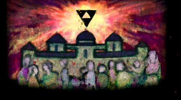 In this episode, the wielders of the three parts of the Triforce (Power, Wisdom, Courage) are obviously Link, Zelda and Ganondorf, the same as Ocarina of Time. Each of the Triforce bearers can be seen using their piece of the Triforce at various points in the game, such as when Link is protected by the Triforce of Courage's power when he first enters into the Twilight. Interestingly, the wielders of the Triforce are said to be "blessed by the goddesses."[87] Though it is not directly stated, it appears that Zelda transfers her piece of the Triforce to Midna to save her life when Link brings the dying Twili imp to the princess.[40]