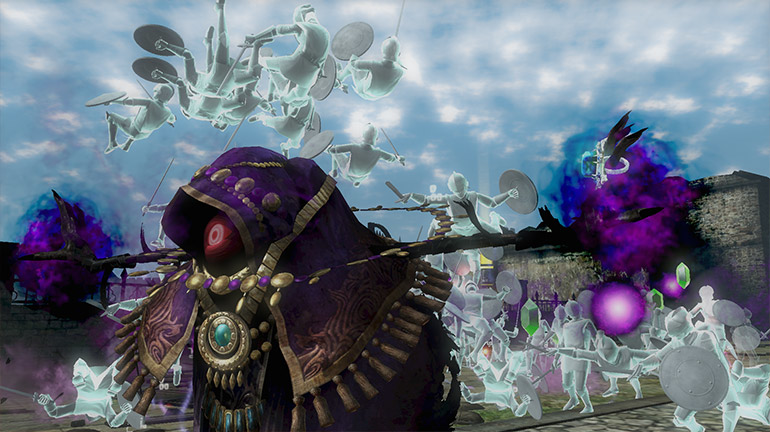 After the three Gate of Souls are closed, the Hyrulean Forces then travel to the Temple of the Sacred Sword to retrieve the Master Sword to defeat Cia with. Unbeknownest to them, Wizzro is there and the Allies are attacked by the Ghost Forces defending the temple. Zelda soon feels an evil presence nearby, which Proxi confirms her suspicions and feels there is an impostor among them.[11] Link finds an impostor Lana who is controlling the Ghost Forces,[12] and defeats her, thus freeing the Ghost Forces from their control. Wizzro, still under the disguise of Lana, swears he won't let Link win and momentarily disappears.[13] He shortly reappears after Link acquires the Master Sword, and tries to attack Link from behind with a blast of dark magic. But Link deflects it with his new sword, and fights Wizzro. During their fight, Wizzro demands he be given the Master Sword,[14] but is told by Zelda that it cannot be wielded by evil.[15] He then teleports himself outside of the temple walls, as the location is blocking his full powers,[16] and calls for more enemy reinforcements. Link however finds the wizard and defeats him. Wizzro is forced to surrender and reveals Cia's location at the Temple of Souls.[17]