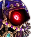 Wizzro is first encountered by the Hyrulean Forces when the Dark Forces invade Hyrule Field. He commands the enemy troops from the Enemy Base, and leaves the battle shortly after releasing King Dodongo.[4][5] The beast, however, is only meant as a distraction, and the Hyrulean Forces later find that the castle has been seized and Princess Zelda has gone missing.[6] Wizzro is then shortly encountered again at the Eldin Caves, as one of the enemies stopping the progression of the Bombchus.[7] However, he is defeated and retreats from the battlefield.